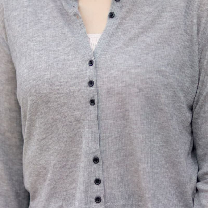 柔らかな薄手のカットソーリブ素材を使用したコンパクトなカーディガン。
