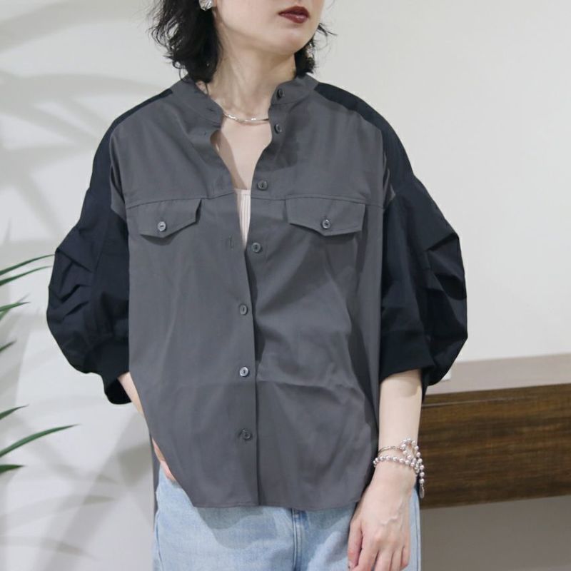 異素材の組み合わせが目を惹く、洗練された大人のためのブラウス。