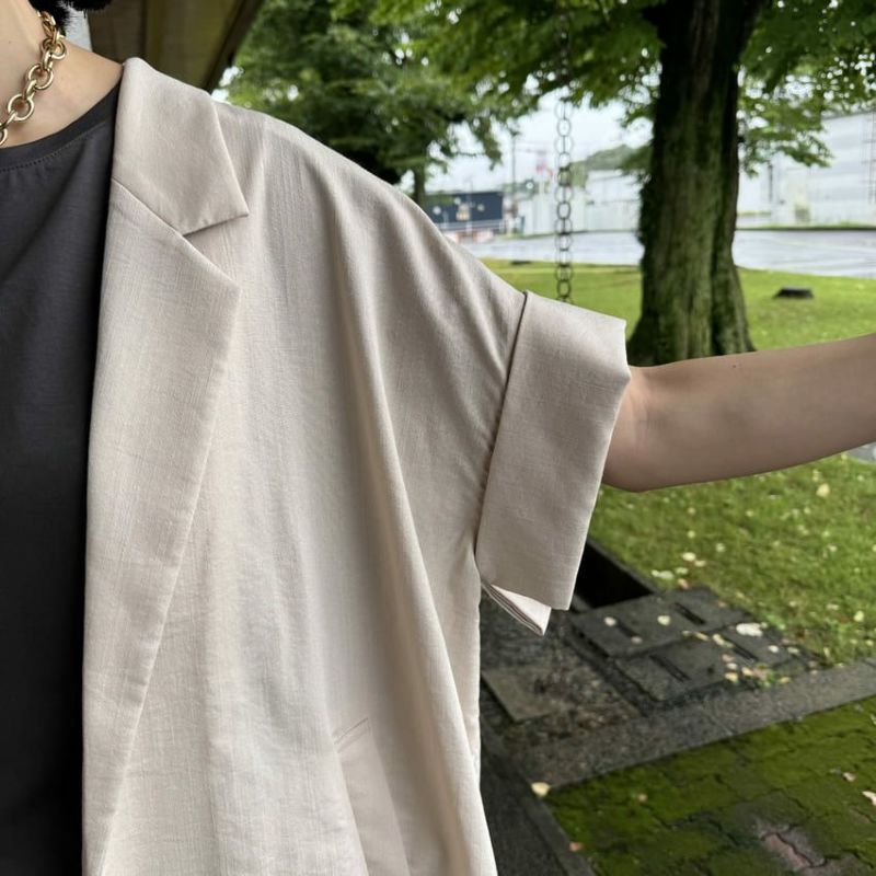テーラード襟できれいめ感がある中に、ゆるっとしたサイズ感で程よいラフさがあるため、こなれ感のある大人スタイルを簡単に作ることが出来ます。