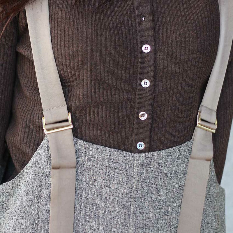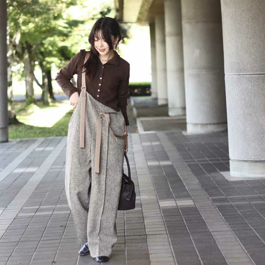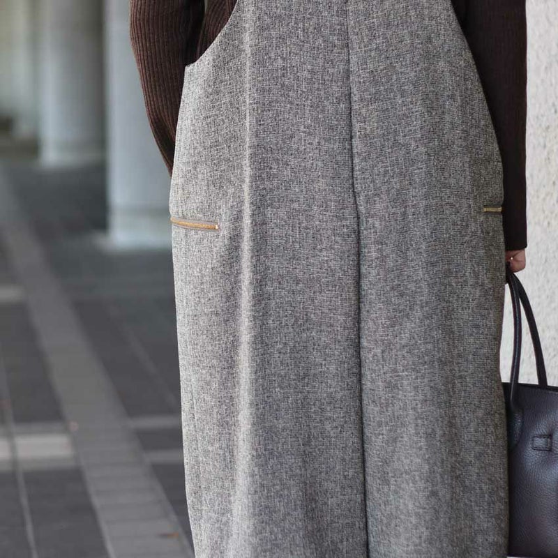 ツイード×サテンが上品に映える、大人のためのサロペット。