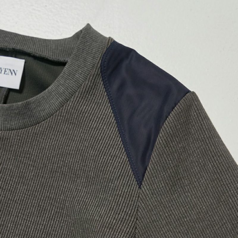ミリタリーニットを参考にしたショルダーパッチのディテールでカジュアル感をプラスしました。