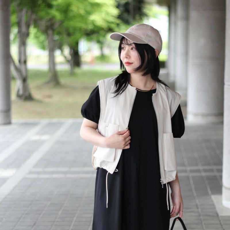 ミニマルなサイズ感に、前後でデザインに変化をつけたナイロンべスト。
