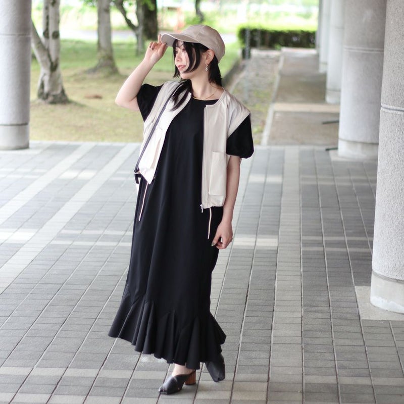 大人の女性が着用しやすいショート丈で、ハイウエストのボトムスやワンピース、サロペットなどと好相性です。