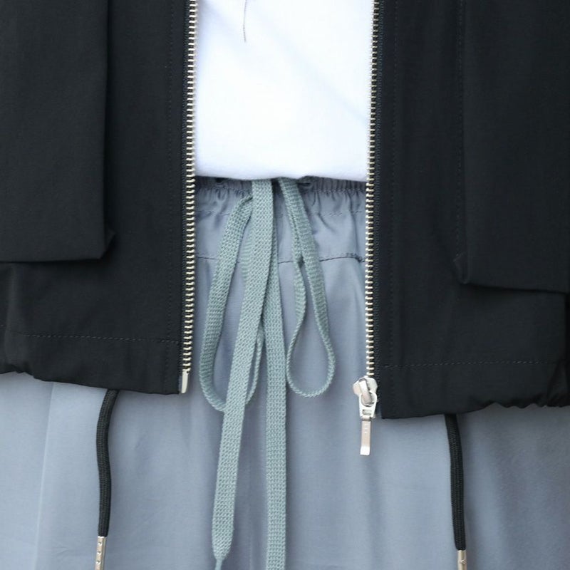 前身頃の大き目なマチ付きのアウトポケットやナイロン素材が、適度なスポーティーさもあり、抜け感を演出してくれます。
