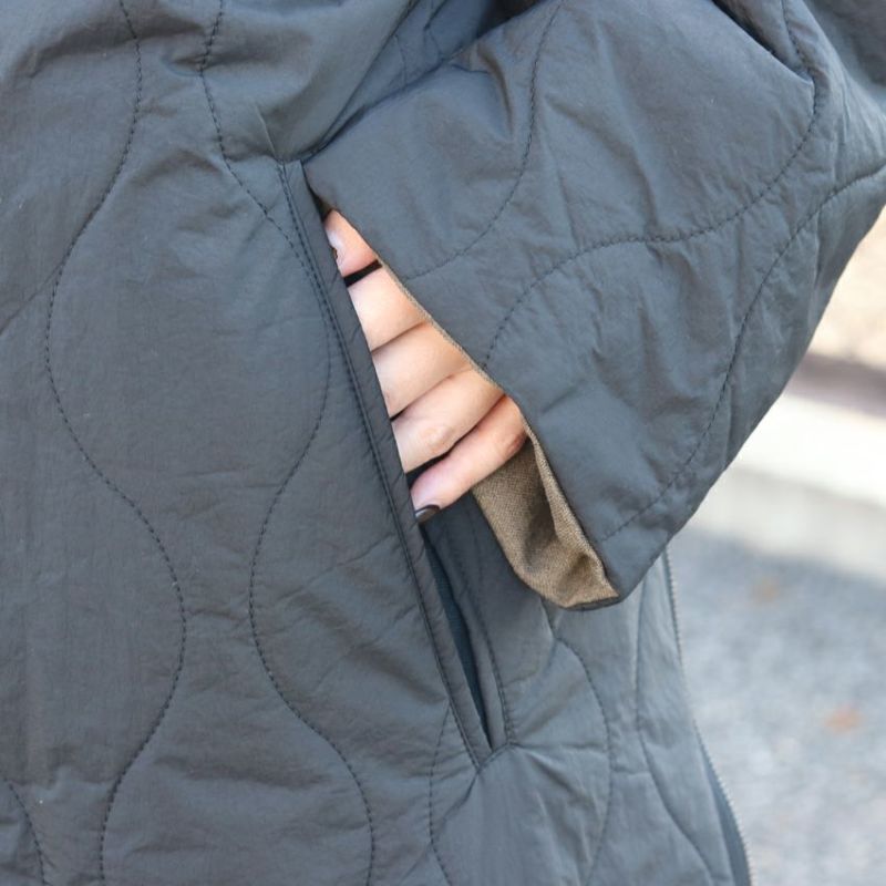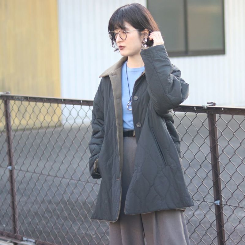 ステンカラーの中綿ジャケットは、リバーシブル仕様で2WAYの着こなしが楽しめる万能アウター。