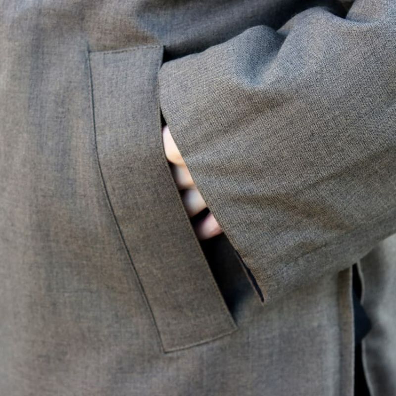両脇裾にはジップ付きスリットを配し、開けて着ることで抜け感をプラス。