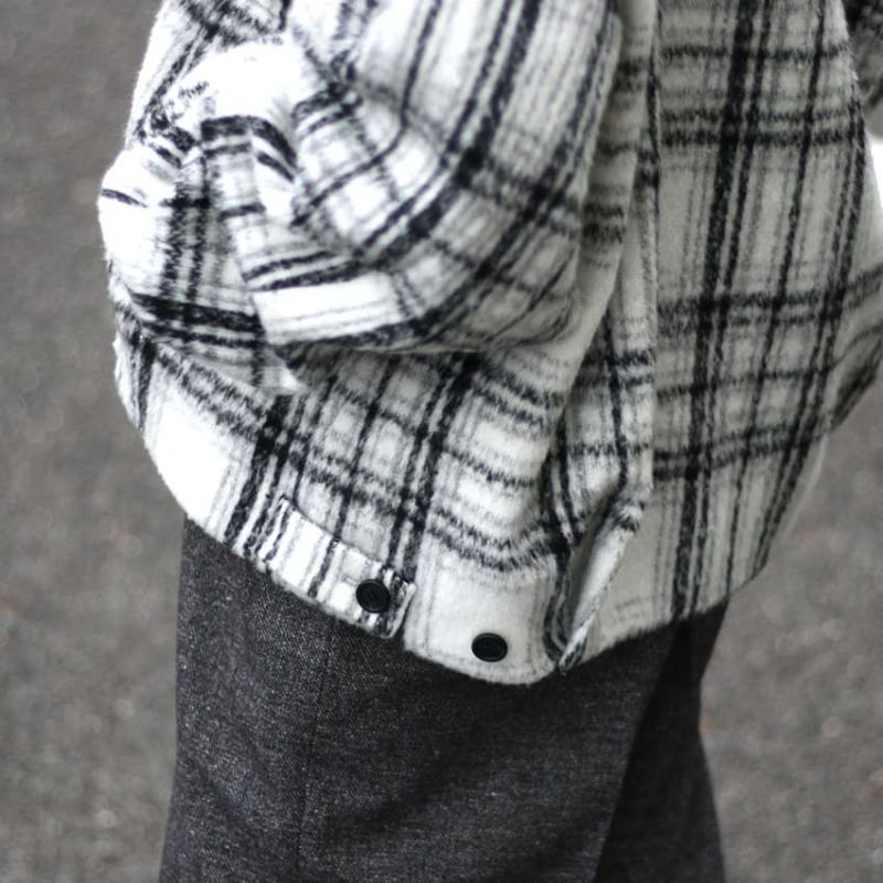 シャギーの柔らかな起毛感が、チェック柄に奥行きとニュアンスをプラス。