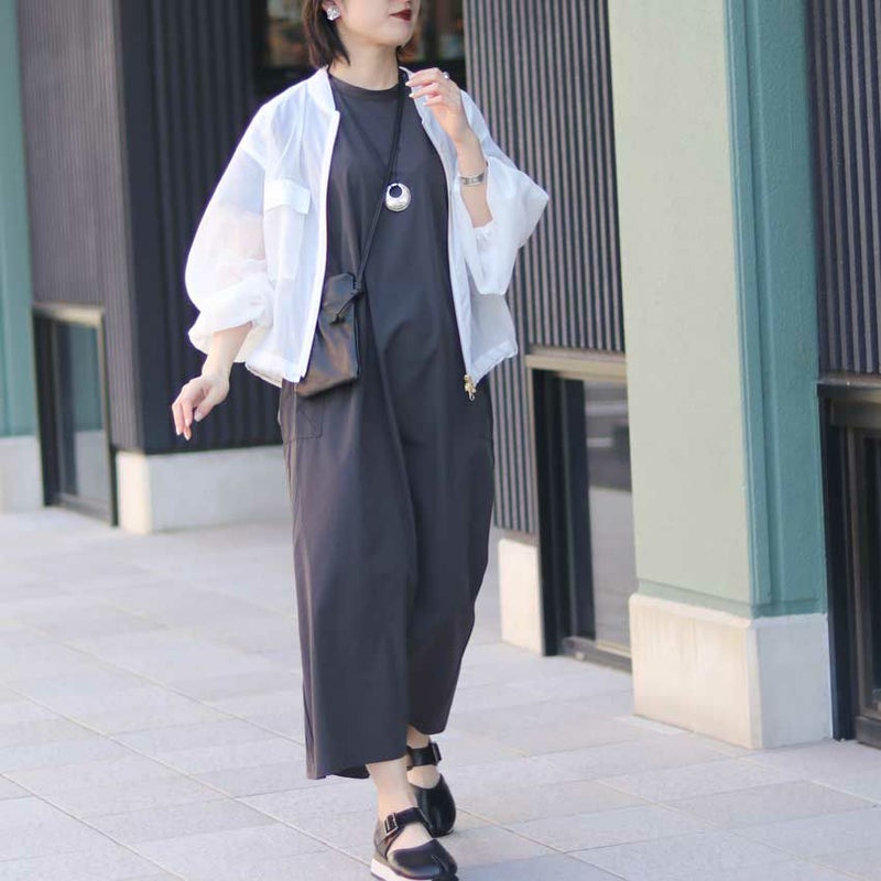 短めの丈感なのでパンやスカート、ワンピースなど幅広いボトムスに合わせて頂きやすくなっています。
