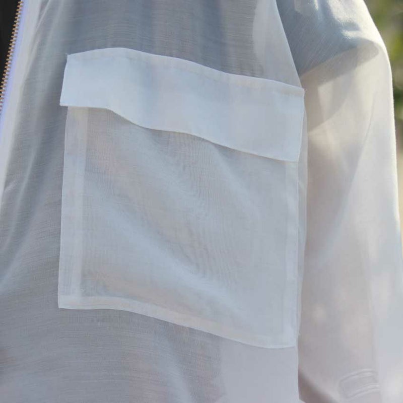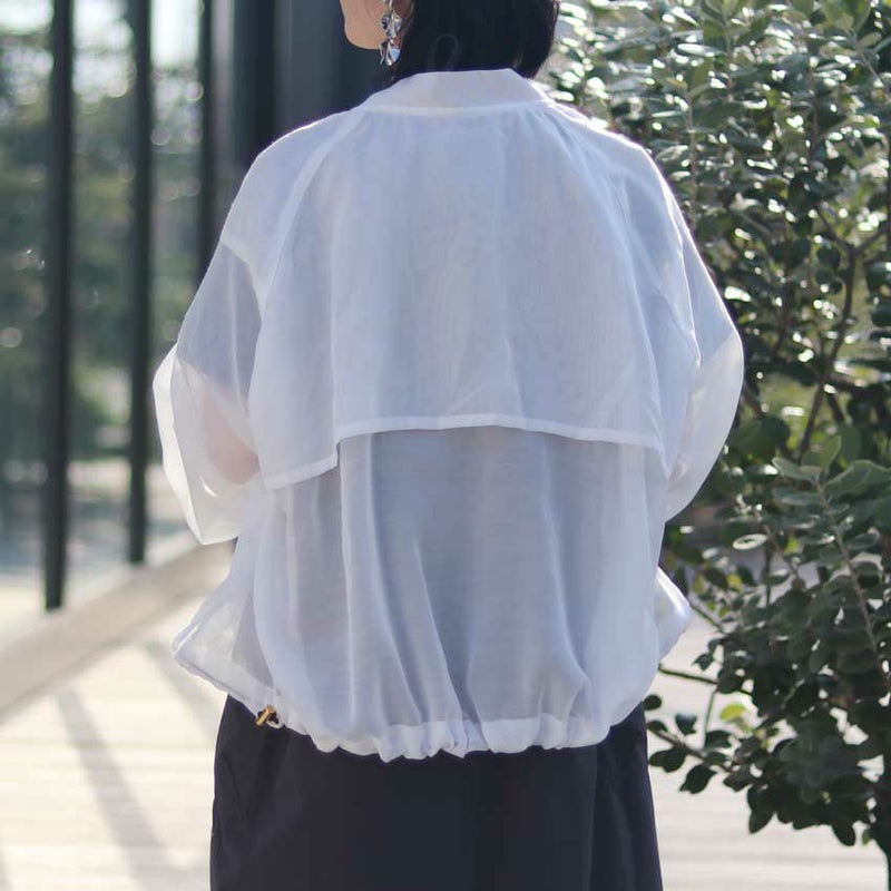 透けすぎない程よいシアー感で、さらりと軽いボイル生地のスタンドネックショート丈JIPブルゾン。