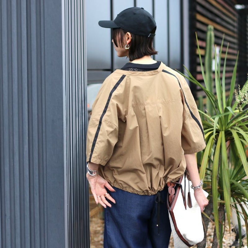 trois/トロワ タスランタフタ ハーフスリーブショートブルゾン T251-83042 半袖 5分袖 短丈 アウター ジップアップ