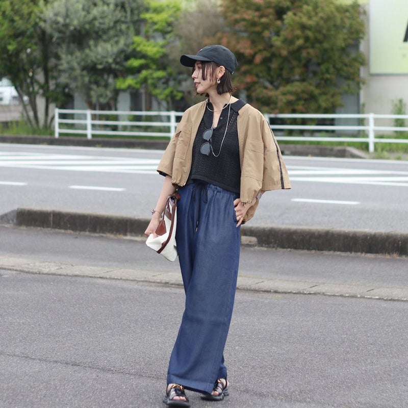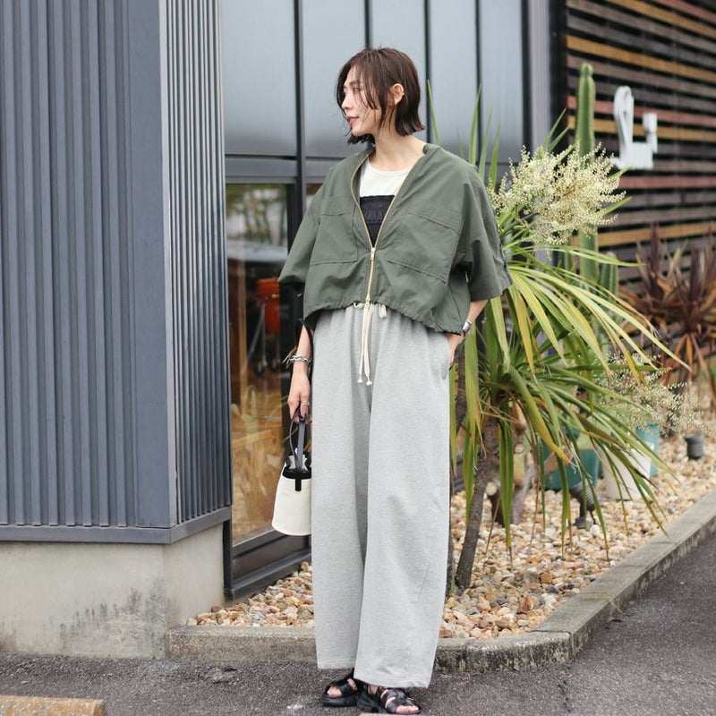 トレンドである短丈であり、ゆったりとしたシルエットとなっています。