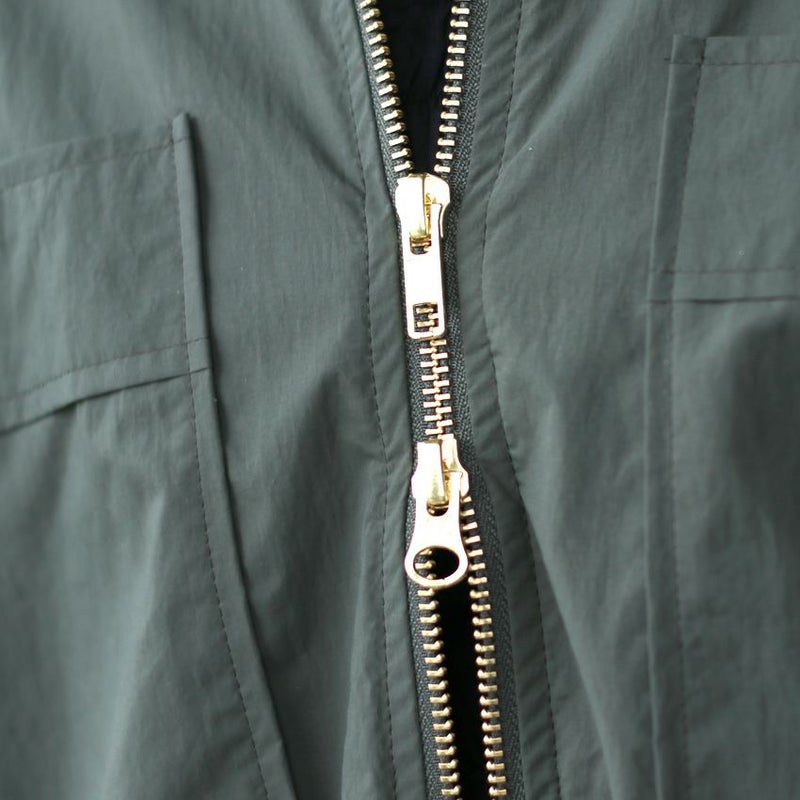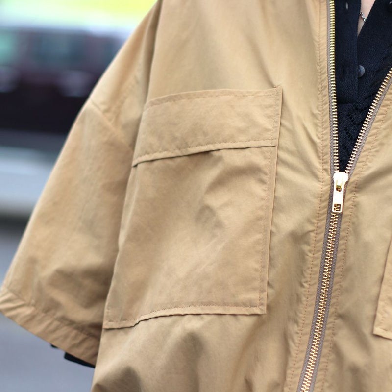 シンプルにもカジュアルにも併せられて、シャツのような襟とブルゾンをミックスしたようなユニークなデザインがポイントです。