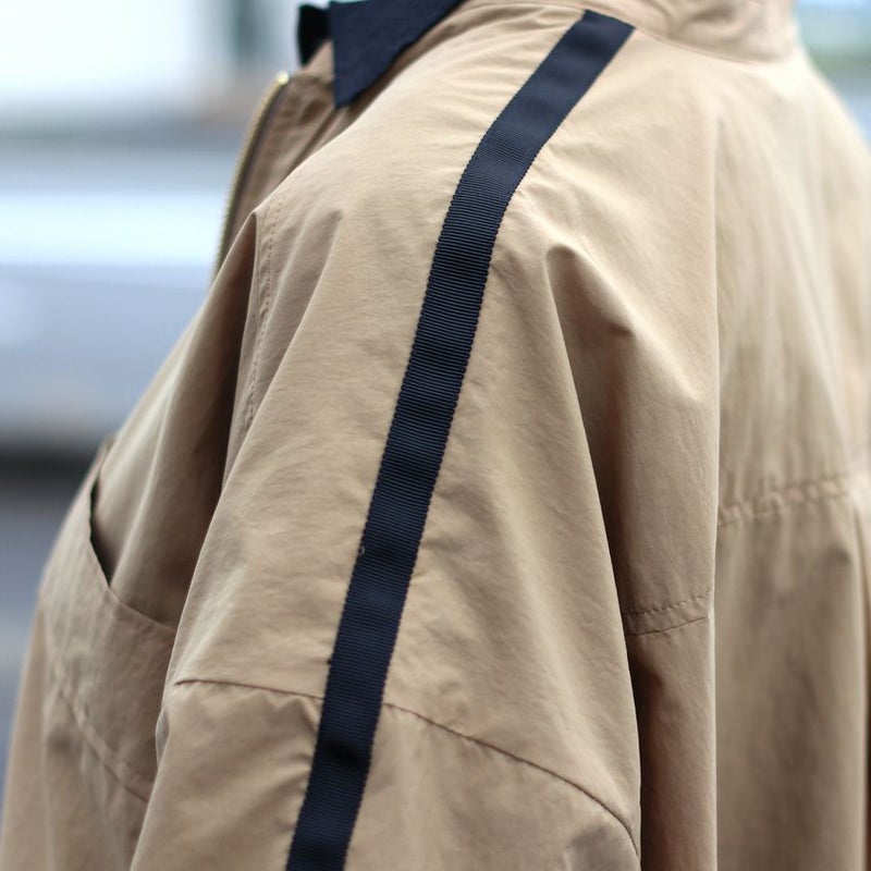 撥水性に優れたタフタ素材の肩に入ったラインがスポーティーでお洒落なブルゾン。