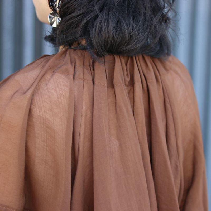 首元と袖口にはギャザーを施し、全体にふんわりとした丸みのあるシルエットを演出。