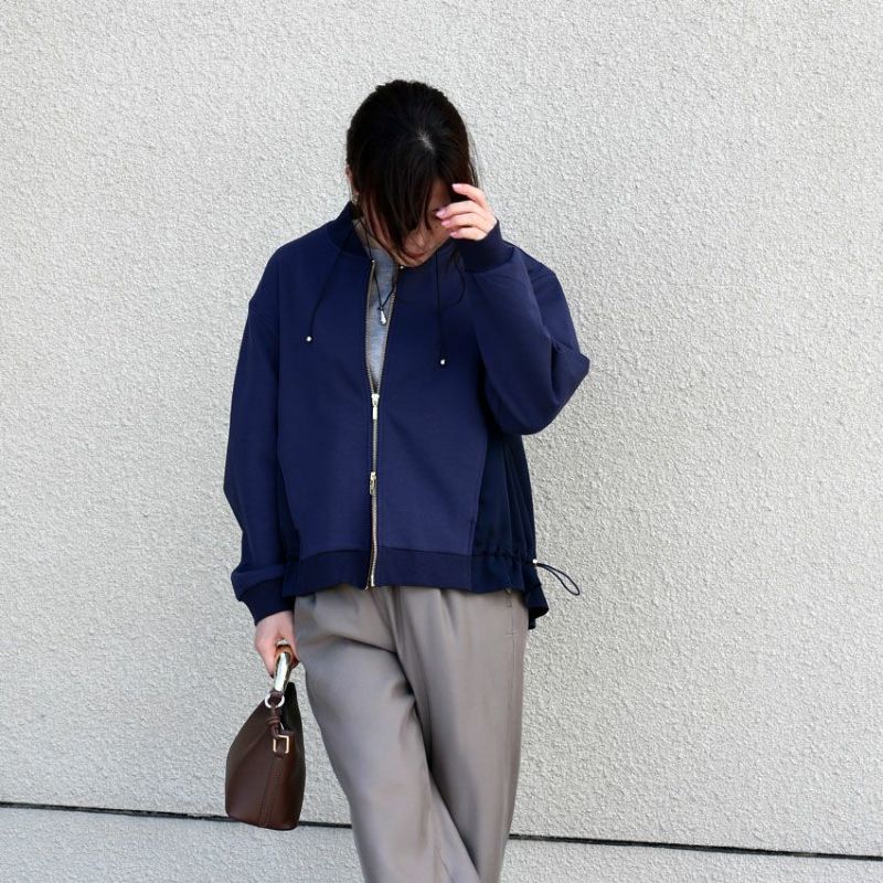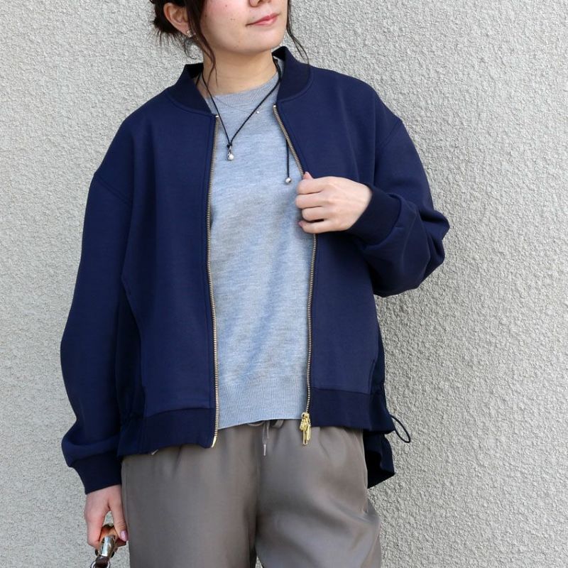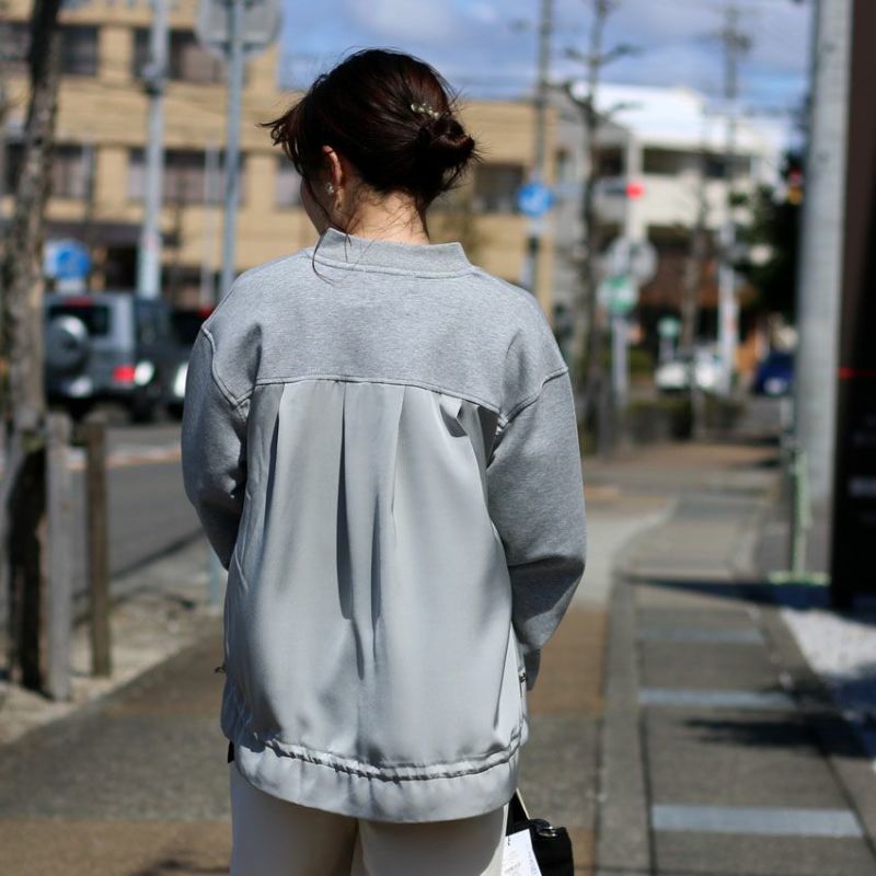 カジュアルになりがちなブルゾンを、バックプリーツと異素材使いでアップデートしたこなれ感ある1枚です。