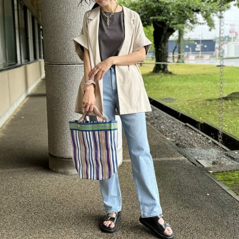 テーラード襟できれいめ感がある中に、ゆるっとしたサイズ感で程よいラフさがあるため、こなれ感のある大人スタイルを簡単に作ることが出来ます。