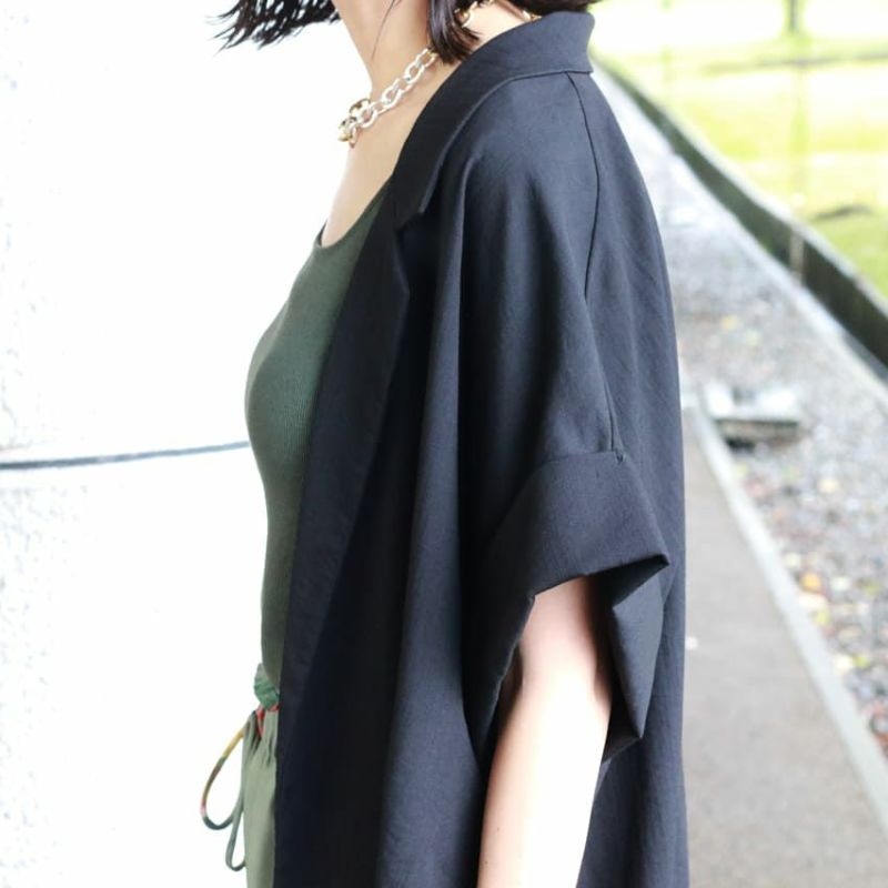 落ち感のあるシルエットよ柔らかい生地感で程よいドレープが生まれ、さらっと快適に羽織ることができます!