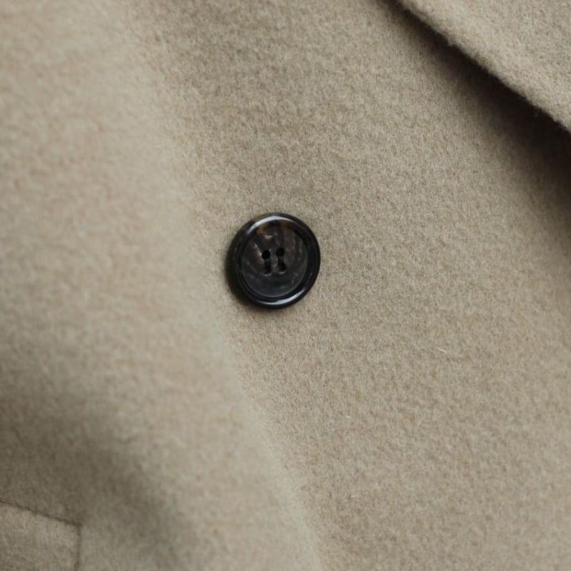 上質なウールを採用したコートはチクチク感が一切なく、裏地が無くても軽い着心地が人気を博しています。