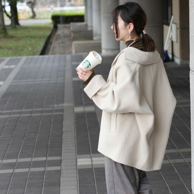 旬な大きめのダブルカラーは、顔回りを華やかに仕上げてくれます。