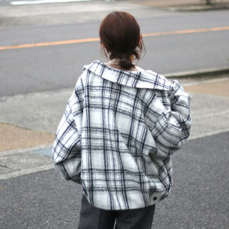 ふんわりとしたシャギー素材と大柄チェックが目を惹く、