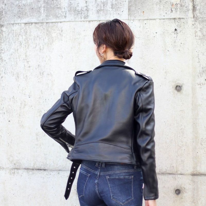 ダブルライダースでありながら、しなやかなレザーを採用することで、レザー特有の武骨さがなく、女性らしく着こなせる一着となっています。