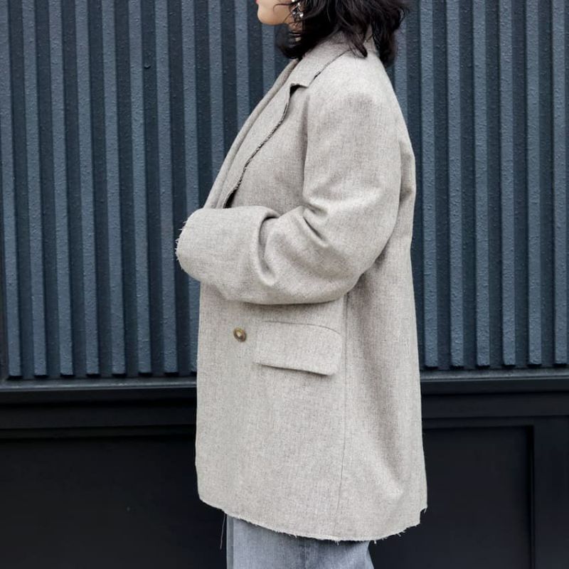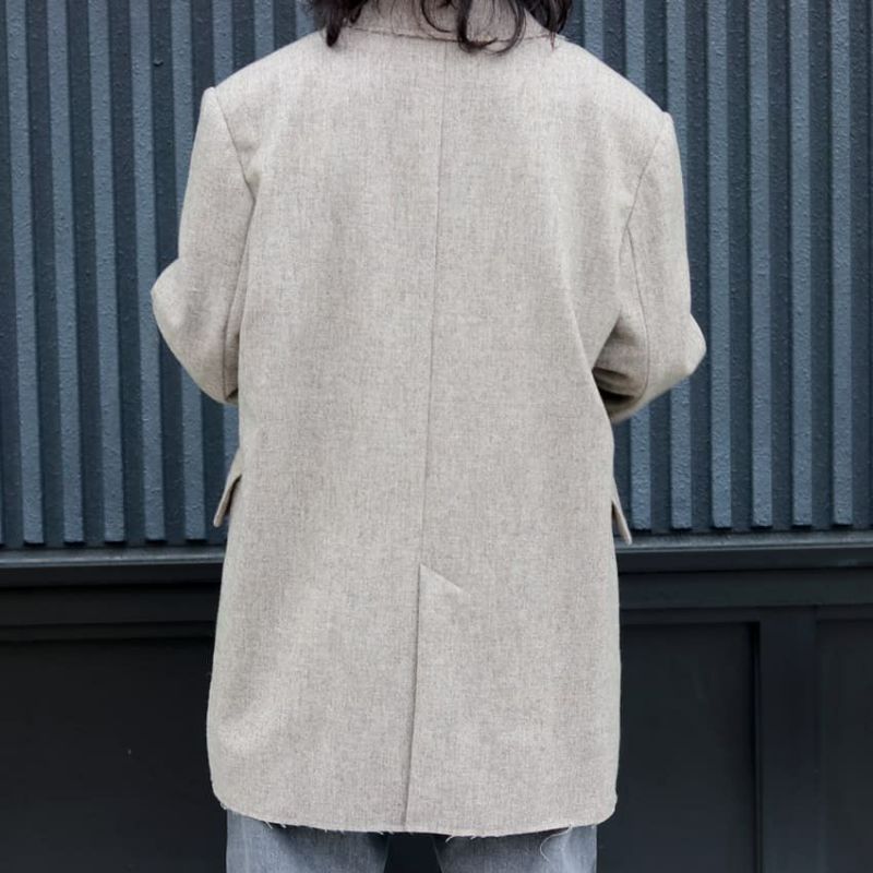 肩にはさりげない薄めのパッドを仕込み、オーバーショルダーで仕立てることで、今季らしいモードなシルエットを実現。