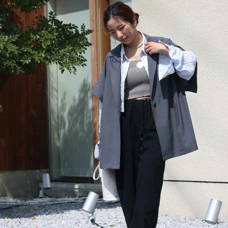 ノースリーブやキャミ、Tシャツなどに合わせて涼し気に夏の羽織として使って頂くのもお洒落に着こなせる。