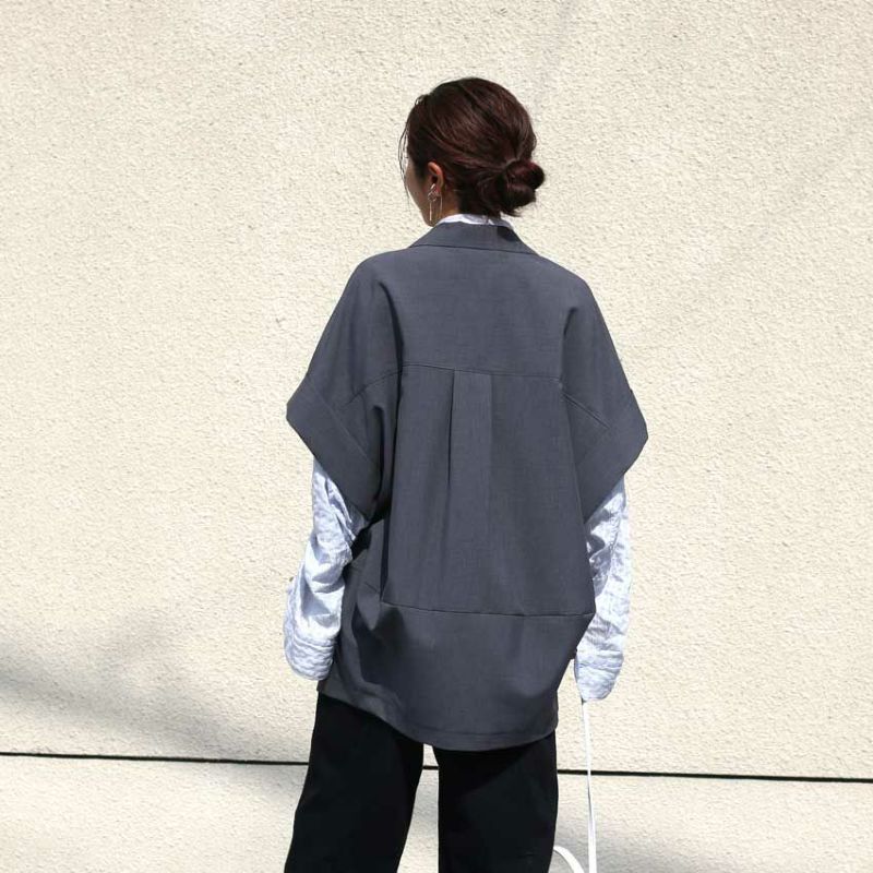 エアリーな質感と着心地、対照的なテーラードのきちんと感が魅力の半袖ジャケット。