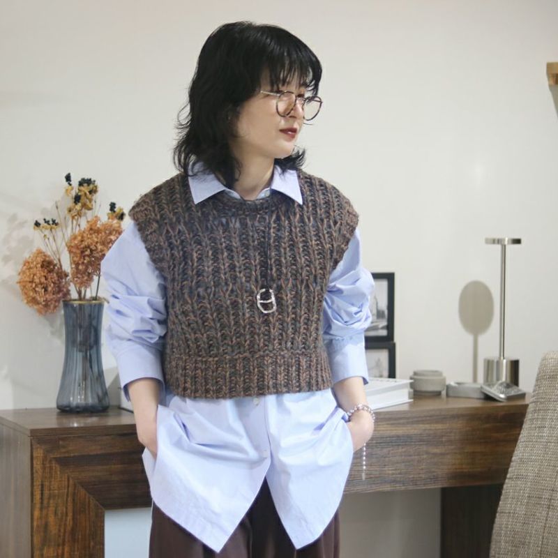 ふんわりと柔らかなロービングヤーンを使用した、着心地抜群のニットベスト。