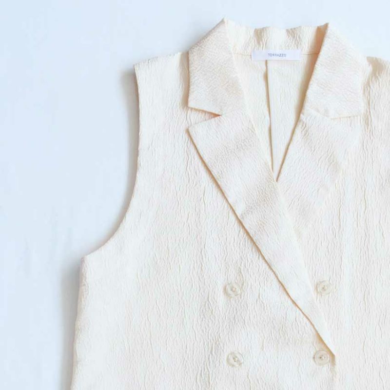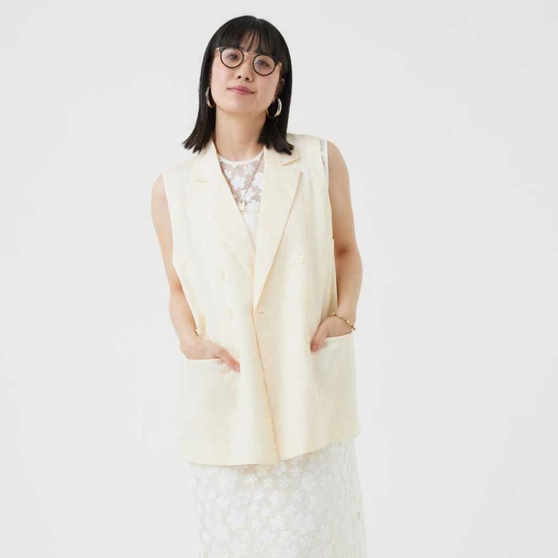 立体感と軽やかさを纏う。膨れジャガード生地のロングダブルベスト。