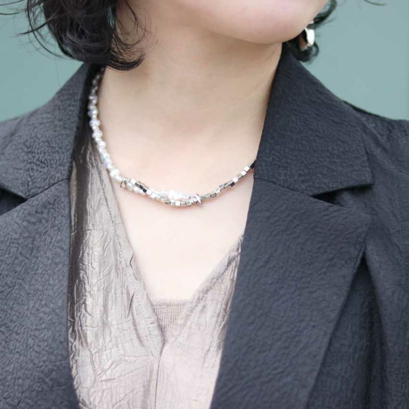 フェミニンなワンピースやスカートとも好相性。甘さを程よく引き締め、上品なバランスを演出します。