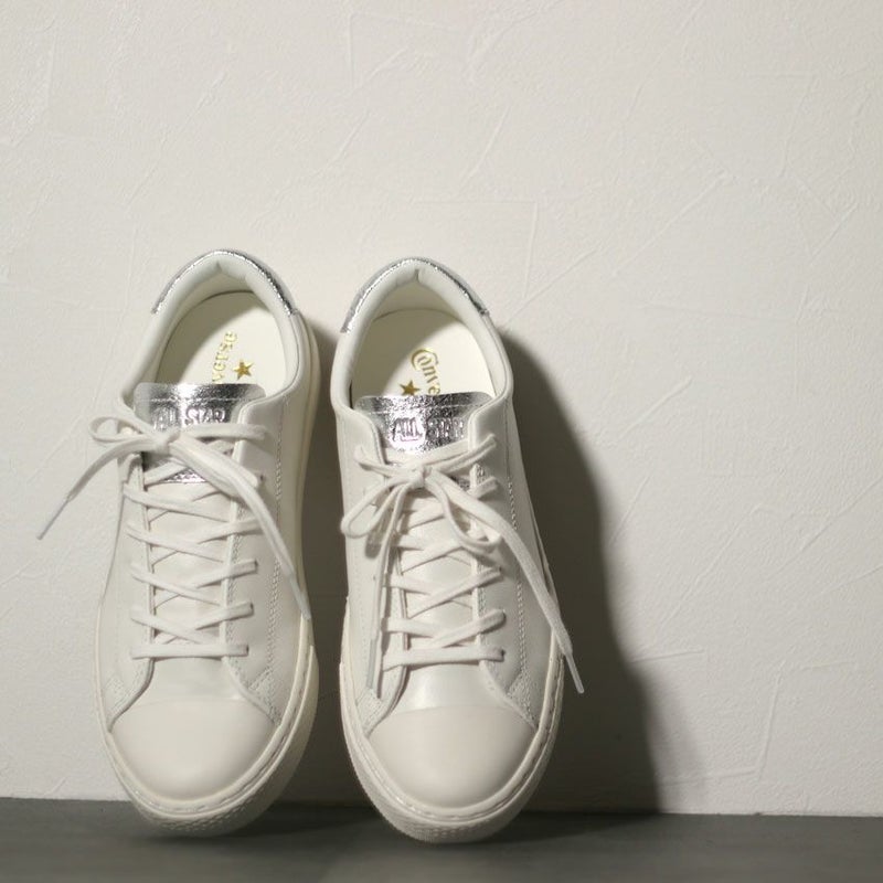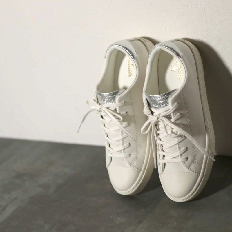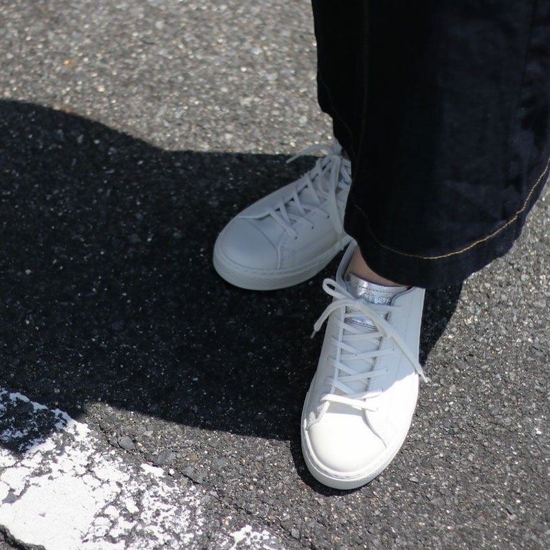 高級感ある純白のレザーが、スニーカーのイメージを覆すようなキレイめな一足に。