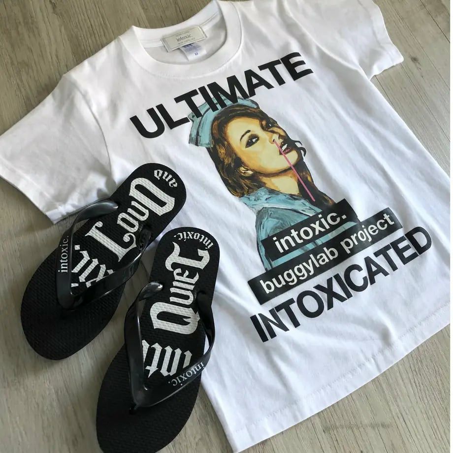 鼻緒とソールにロゴをあしらったintoxic.のビーチサンダル。