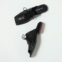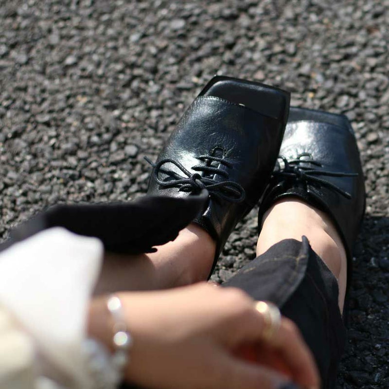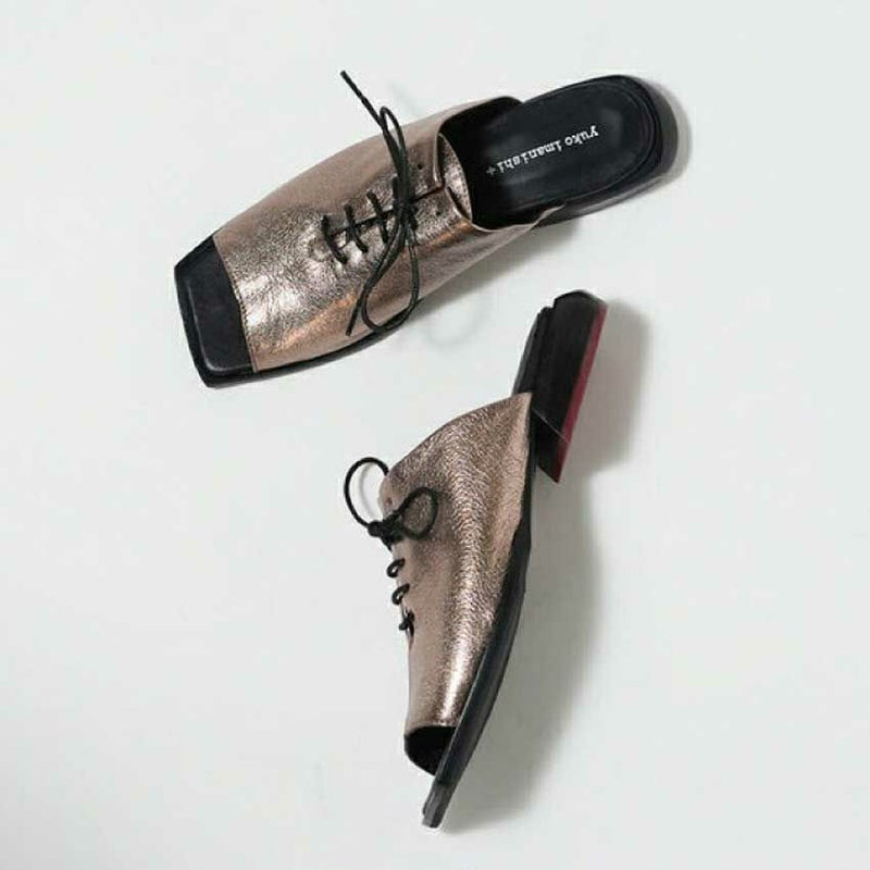 品のある光沢とシボが入り混じる山羊革特有の柔らかさを加味した デザイン性あふれるyuko imanishi +[ ユウコイマニシプラス ]の新作シューズ。
