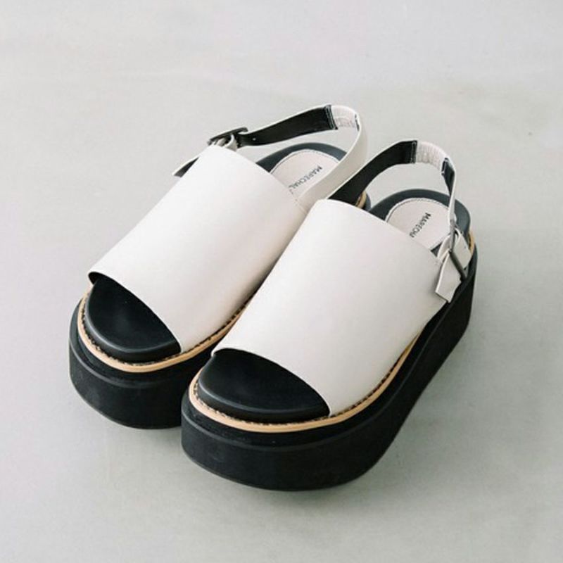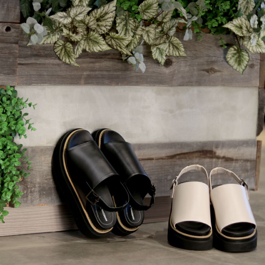 4.2cmのEVAソール、コバ、底と3層で合計7cmの厚底ソールがデザインポイントで、目を惹く存在感のあるデザイン