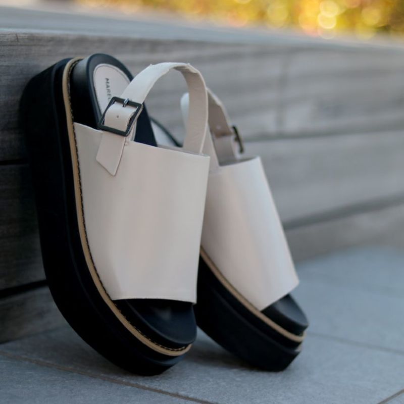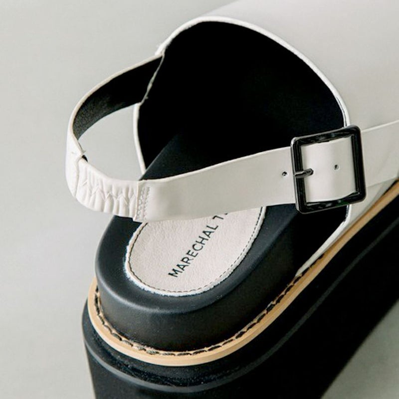 引っ掛けバックルは、踵部分にゴムが入っているので、ベルトを外さなくても履ける機能的な仕様になっています。
