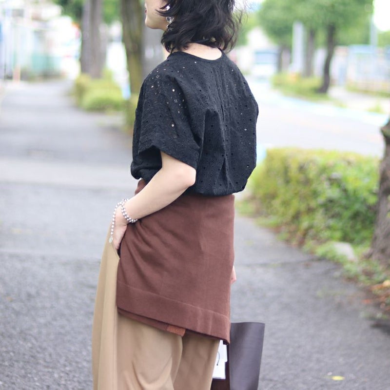 パッチポケットブラウスはボトムスを選ばない丈のバランスで着回しのしやすい一枚。