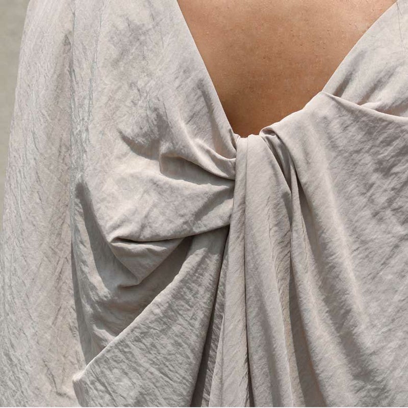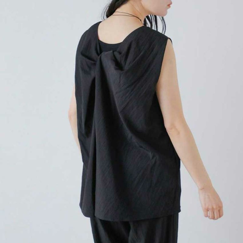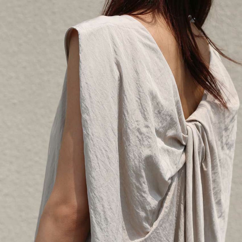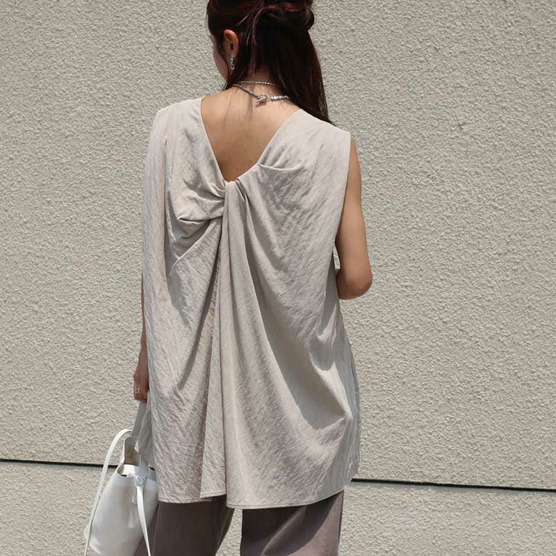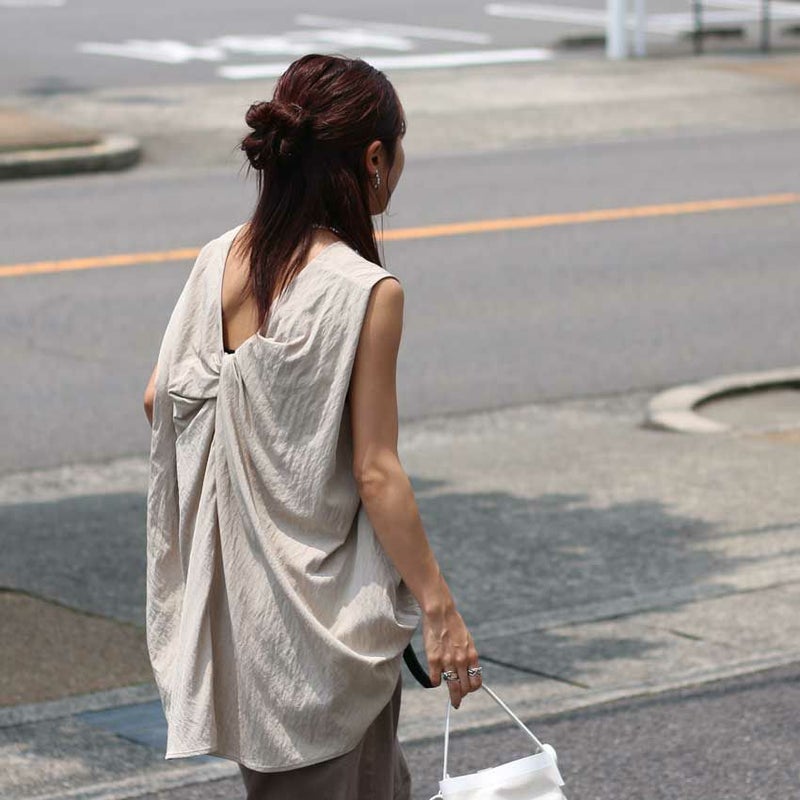 背中のツイストデザインが視線を集める、抜け感たっぷりの一枚。