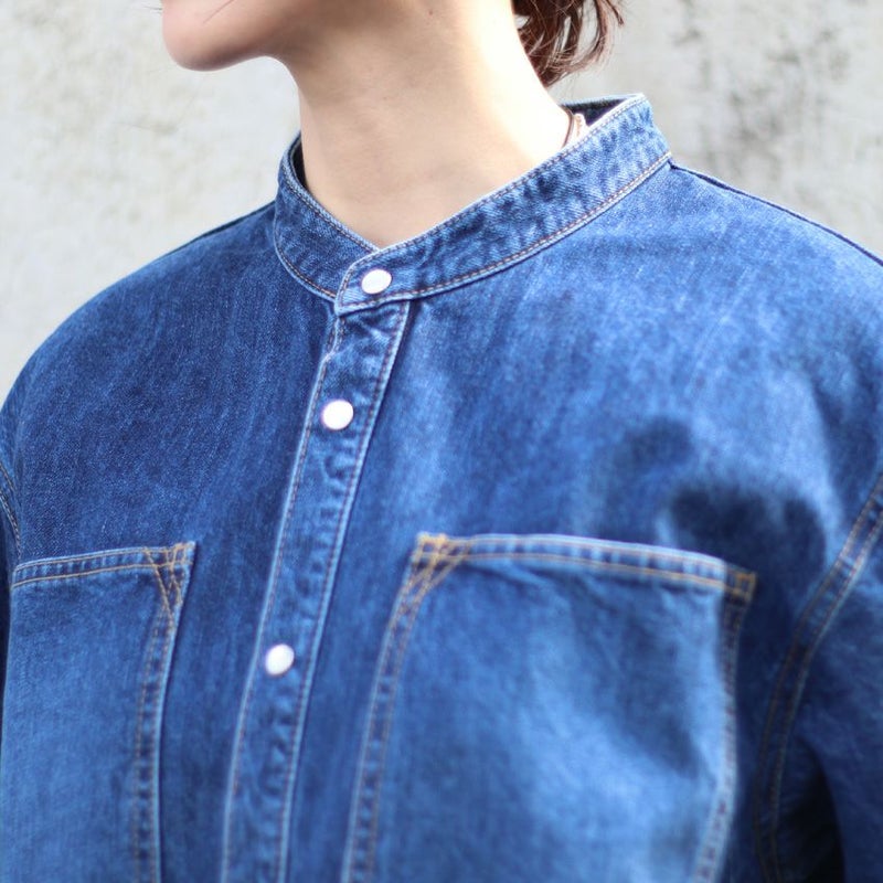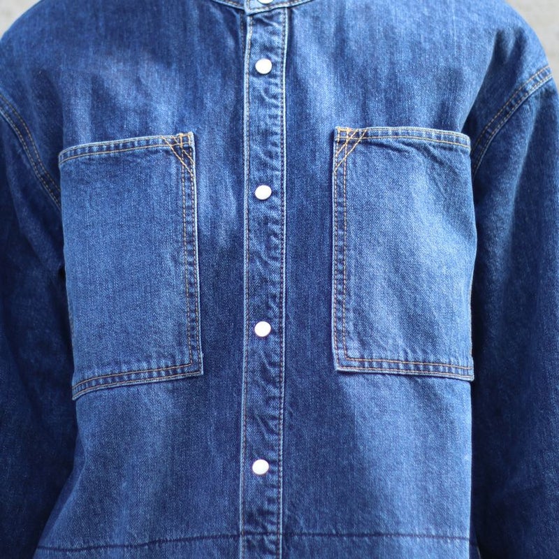 デニム本来のしっかりとしたハリや色落ちを再現したコットンデニムシャツブルゾン。