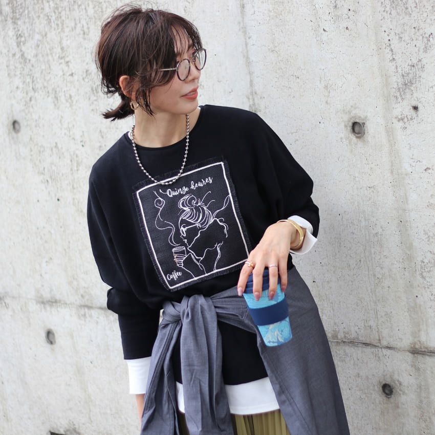 こちらのマリードールのパッチワークシリーズは夏も大活躍で、可愛いい、素敵〜と大好評でした。長袖バージョンのコーヒー片手のパッチワークに一目惚れ!まだ、今は生地は暑いですが、白のタイトスカートや、デニムに合わせたらとても素敵にコーディネート出来ましたよ!足元はブーツ履けばバッチリ。買って良かったです。大満足でした。