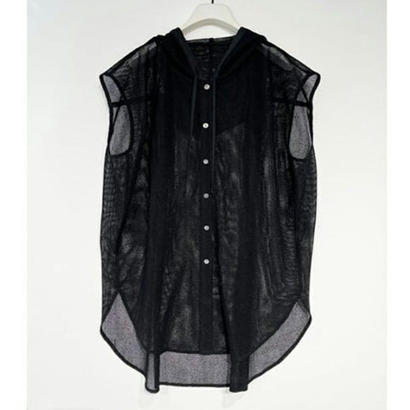 細かめなメッシュ素材を使用した、フーディシャツ。
