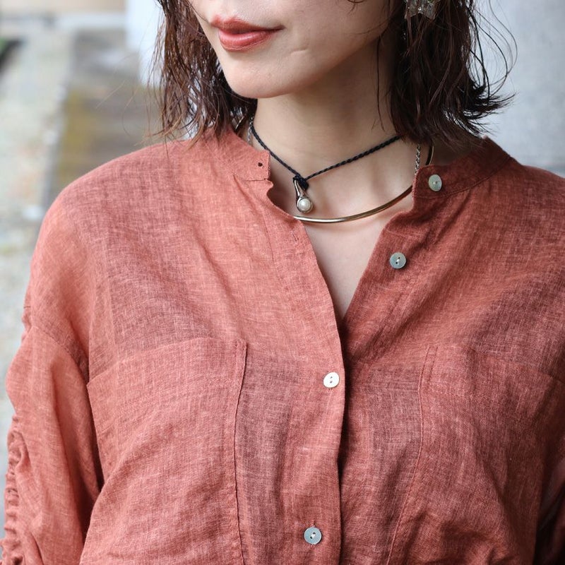 綿麻の素材を使用した、デザイン長袖シャツです。