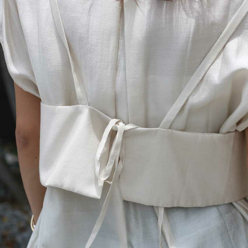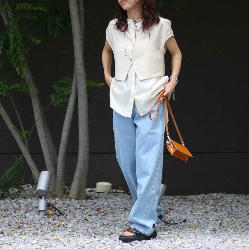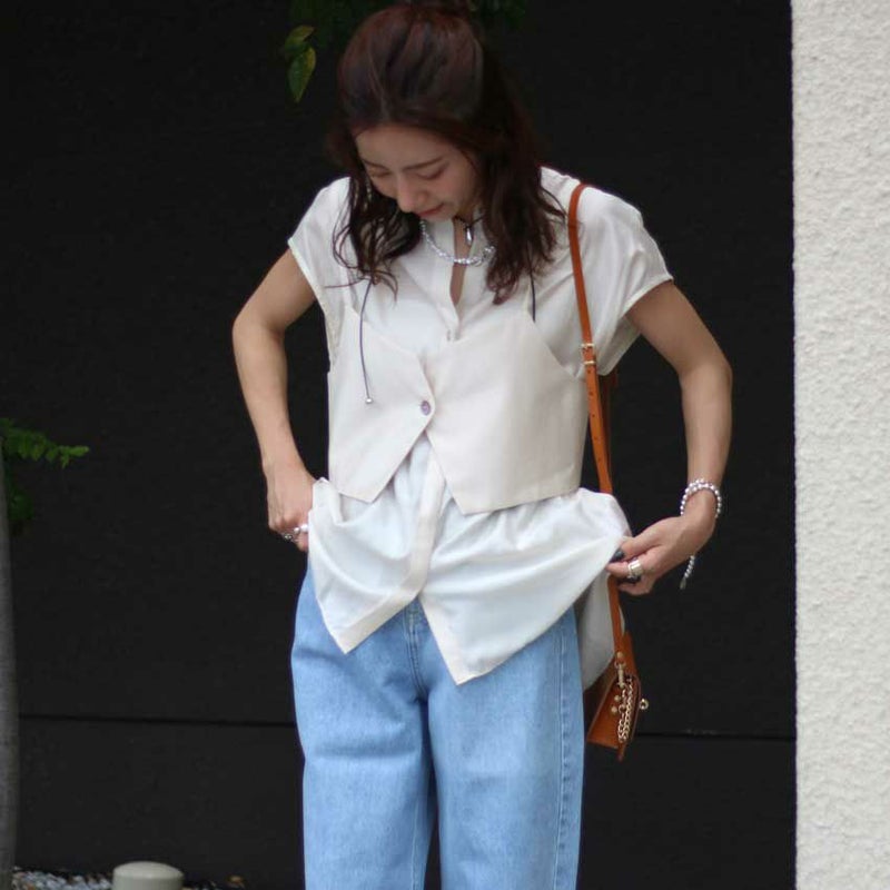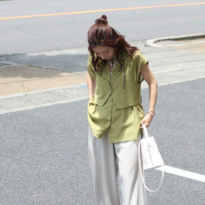 セットで着るのはもちろん、シャツ・ビスチェそれぞれ単体でも着回し自在。スタイリングの幅がぐっと広がる、頼れる一着です。