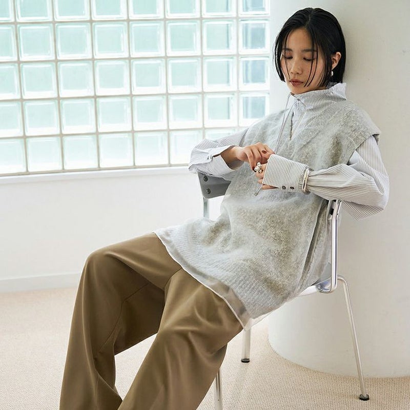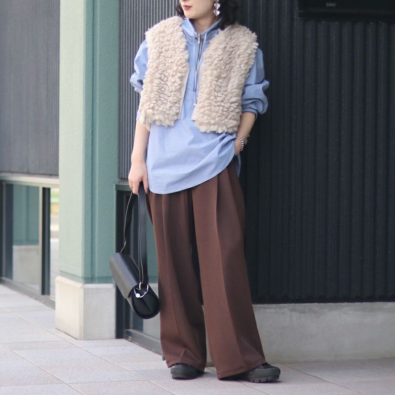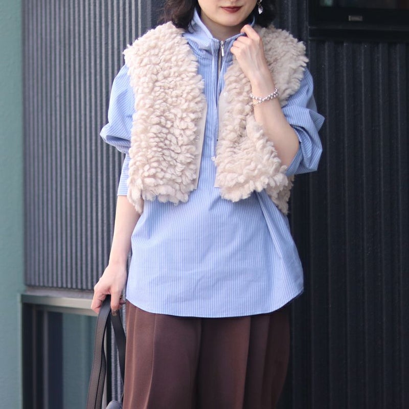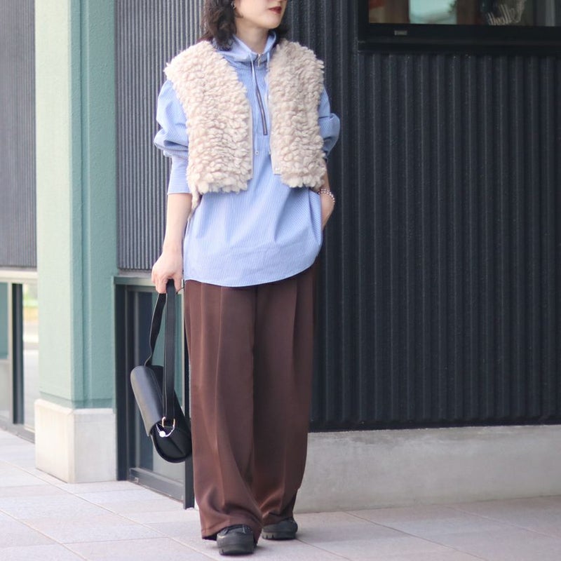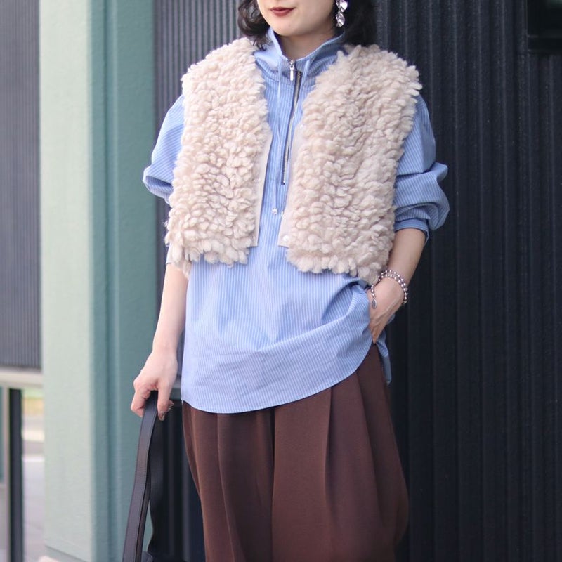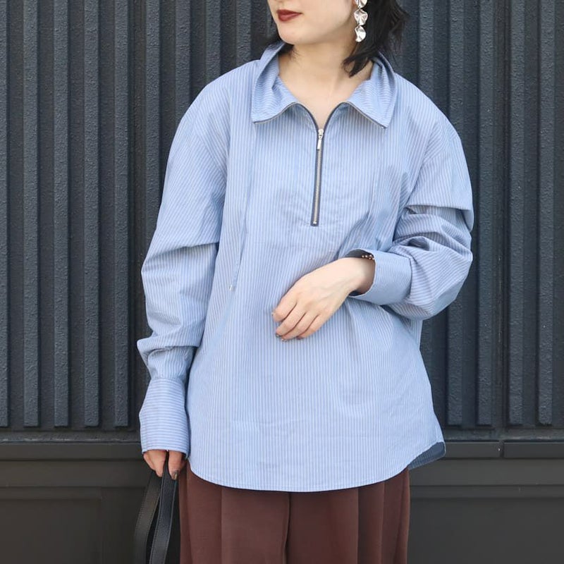 衿を開いてゆるっと抜け感のある首元にしたり、衿を立ててスポーティに着こなしたりと、様々な表情を楽しめます。