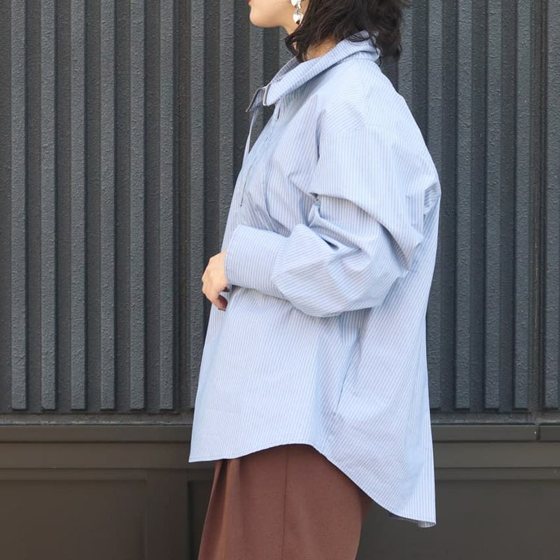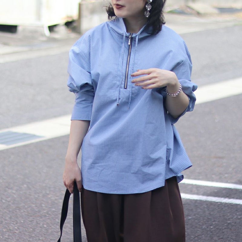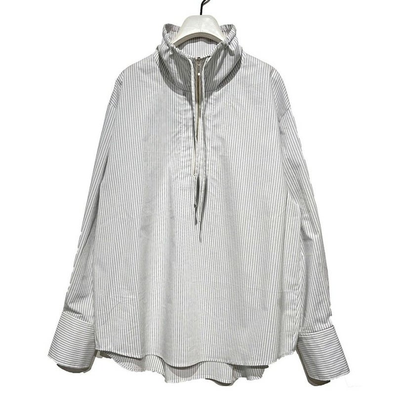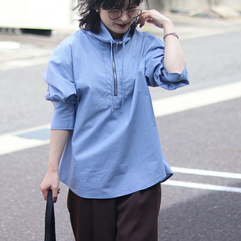 トラッド感のあるストライプのシャツ生地を使用したアノラック風のデザインシャツです。