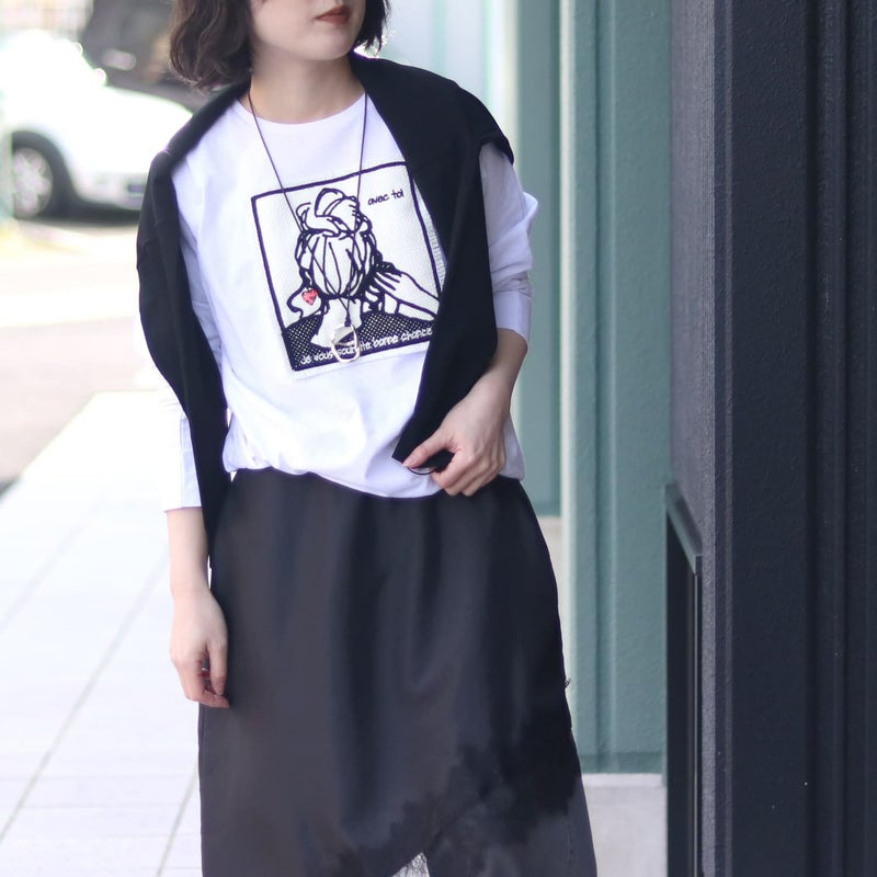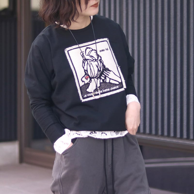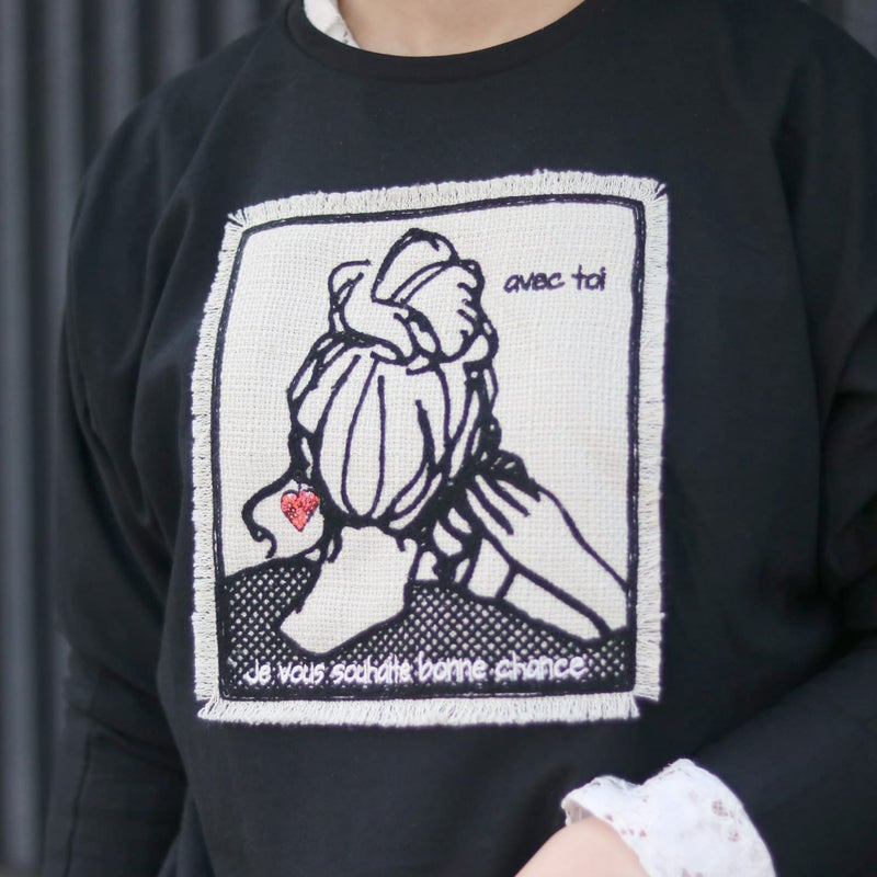 マリードールの大人気パッチワーク刺繍デザインのロンT。