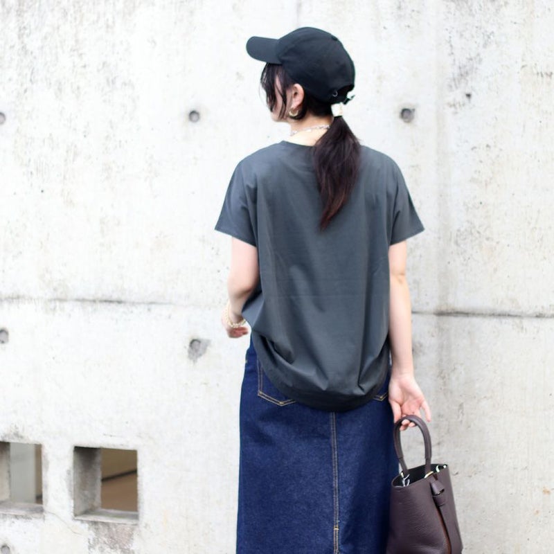 カジュアルコーデにはもちろん、きれいめコーデのハズしアイテムとしても活躍する、ワードローブに1枚は持っておきたい万能Tシャツです。