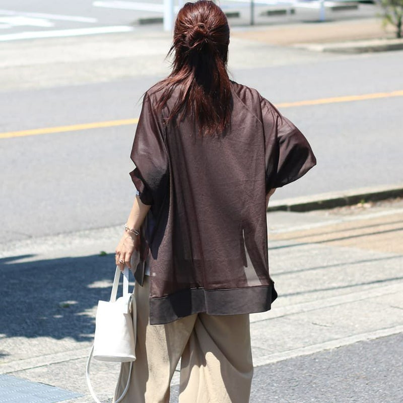 合繊でありながら、まるで天然素材のようなナチュラルなシワ感が、こなれた印象を演出します。