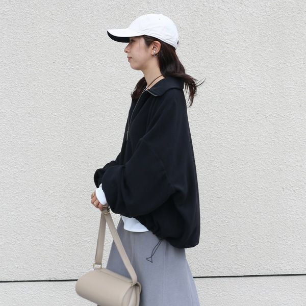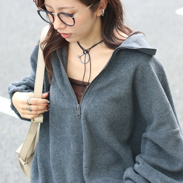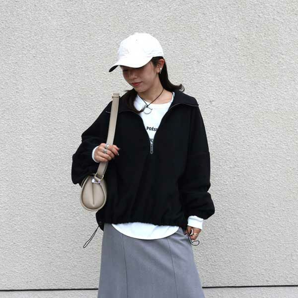 ゆったりとした抜け感が魅力のハーフジップフリース。