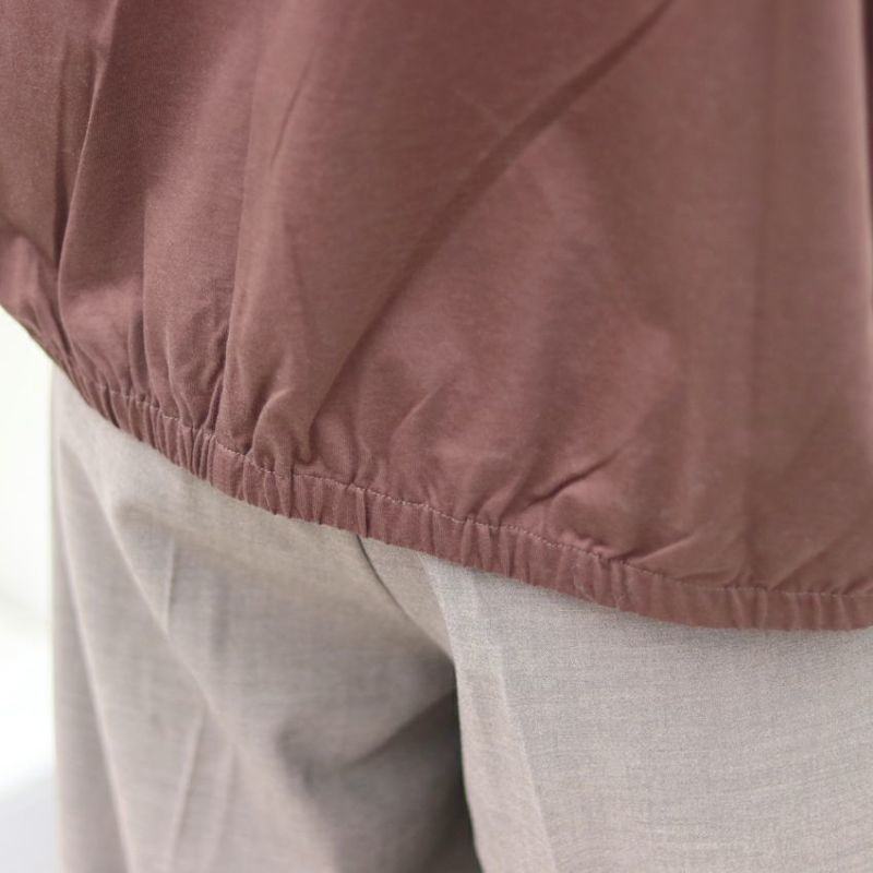 後ろ裾のギャザーがふんわりとヒップを包み込む立体的なシルエットは体型カバーにも効果的。
